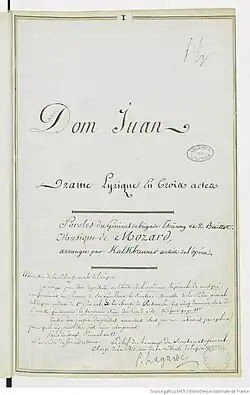 - Don Juan (1805) : drame lyrique en trois actes. Il est joué pour la première fois en français le à l'Académie impériale de musique. Son texte est arrangé par Thüring et Denis Baillot, sous-bibliothécaire de la Bibliothèque impériale de Versailles. Sa musique est quant à elle remaniée par le pianiste Kalkbrenner.