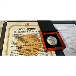 Diplôme et médaille de l'Etat d'Israël honorant la famille Morin comme Justes parmi les nations pour avoir caché Henri Dauman pendant la guerre.Le 14 février 2022, à la mairie de Levallois Perret, Henri Dauman expose ses plus belles photos lors de l'exposition "The Sixties, Henri Dauman Photographies", issue de la rétrospective originale "Manhattan Darkroom". Mais cette réussite extraordinaire n’aurait jamais pu voir le jour sans Julienne et Aurélien Morin, un couple de Limay dans les Yvelines. Pendant la 2eme guerre mondiale, ils ont caché le jeune Henri Dauman. Grâce à eux, cet enfant juif a échappé aux camps de la mort. Sonia, la petite fille du couple a reçu la plus haute distinction civile d’israel pour ses grands-parents: Le statut de justes parmi les nations[130],[131].