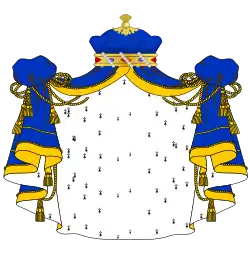 Écartelé : aux 1 et 4, d'azur, à la barre d'argent, acc. de deux léopards lionnés contournés d'or ; au 2, des barons tirés du Conseil d'État brochant ; au 3, de gueules, à une licorne naissante d'argent.[8] |