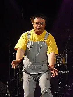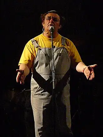 Accompagné par cinq musiciens, il interprète également des chansons à textes comme On n'est pas là pour se faire engueuler, Sois fainéant, Misère, The blues in Clermont-Ferrand, J'suis l'andouille qui fait l'imbécile, et Les Restos du cœur. La chanson La Fanfare est une œuvre collective avec ses musiciens comme il l'explique : « Il y a une énergie collective qui se dégage. Dans le sketch final de la fanfare, tout le monde s'est lâché et c'est sympa. Comme on est très complices en dehors, c'est presque comme une vrai répétition à nous, au cours de laquelle on se chambre. »[21]
