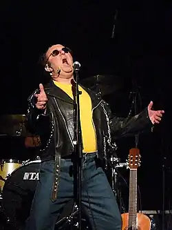 La première partie de son spectacle fait revivre Coluche dans cette célèbre tenue. La deuxième le montre en rocker avec blouson de cuir et lunettes noires. La troisième rend hommage à l'humoriste, avec notamment l'interprétation de la chanson Le Temps des cerises jouée au violon avec des gants de boxe.