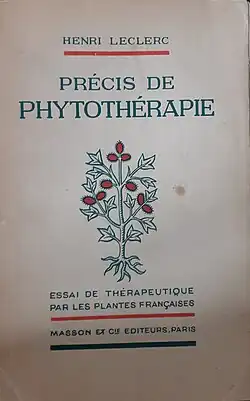 Henri Leclerc publie de nombreux articles dans la revue La Presse médicale, qui aboutissent à son livre Précis de phytothérapie publié en 1922. Eric Frederick William Powell a introduit le mot phytothérapie en anglais en 1934 et Rudolf Fritz Weiss(de) en allemand un peu plus tard. Il faisait la différence entre une phytothérapie à orientation scientifique et une phytothérapie traditionnelle. Il est considéré comme un grand technicien et un grand historien des simples et de la phytothérapie[7]. Il fonda en 1937 la Revue de phytothérapie[8].