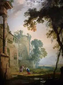 - Paysage sur les marches d'un palais en ruines (vers 1645), 128 × 113 cm, Rennes, musée des Beaux-Arts[2]