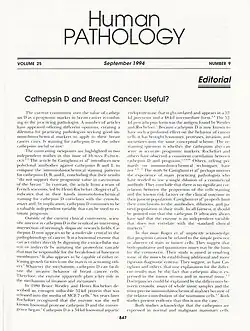 - ↑ P. Roger et al., « Dissociated overexpression of cathepsin D and estrogen receptor alpha in preinvasive mammary tumors », Human Path., 3, (2000), p. 593-600