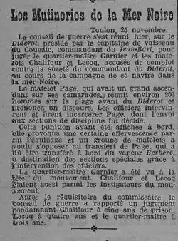 Henri du Couëdic de Kerérant (1868 - 1947) est un officier général de la marine française. Il fut nommé contre-amiral en 1923 et servit dans la marine pendant la Première Guerre mondiale. Lors de cette guerre, il eut plus de quatre commandements à la mer. Il fut le commandant du Jean-Bart à la fin de la Première Guerre mondiale puis dans les Dardanelles à l'époque où eurent lieu les mutineries de la mer Noire" (1919). Malgré ses blessures, il restaura l'autorité sur son navire, le Jean-Bart, qui avait été pris par les mutins. Il est ensuite commandant du port militaire de Cherbourg, l'un des trois ports militaires français avec Toulon et Brest, puis, en 1923, secrétaire du conseil supérieur de la Marine. À partir de , il est nommé commandant en chef de la "Division Navale du Levant"[1] (qui couvrait la zone orientale de la mer Méditerranée, la mer de Marmara, les détroits ainsi que les mers Noire et Rouge et le golfe d'Aden).