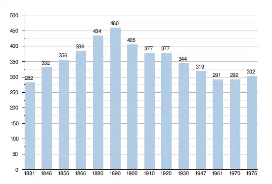 - Sources : INS, Rem. : 1831 jusqu'en 1970 = recensements, 1976 = nombre d'habitants au 31 décembre.