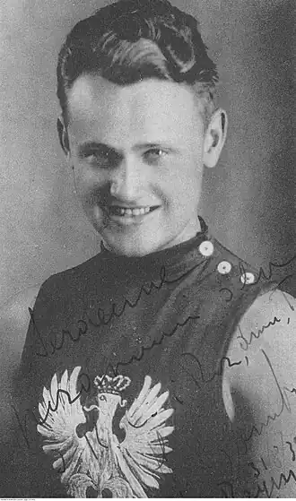 il représente la Pologne aux championnats du monde. En 1929, il est éliminé en quart de finale[note 1],[5], en 1931[6], 1932[7], 1933[8],[9] et 1934[10],[11] il est éliminé en série. En 1930, il bat les records de Pologne des 200, 300, 400 et 500 m départ lancé[note 2]. En 1930, il prend la 10e place du classement du sportif polonais de l'année.