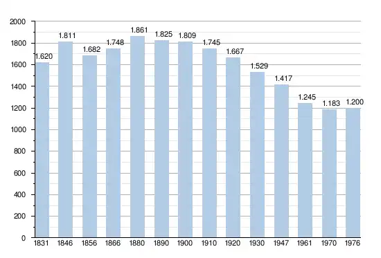 - Sources : INS, Rem. : 1831 jusqu'en 1970 = recensements, 1976 = nombre d'habitants au 31 décembre[2].
