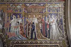 - Église du Souvenir de l'Empereur Guillaume de Berlin : mosaïque de plafond dans le hall du mémorial, par exemple procession des princes et princesses Hohenzollern à l'Agnus Dei, à partir de 1891