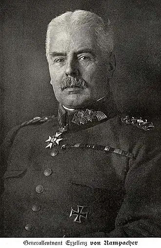 - ↑ Otto von Moser: Die Württemberger im Weltkriege. 2. erweiterte Auflage. Chr. Belser AG. Stuttgart 1928. p. 198.