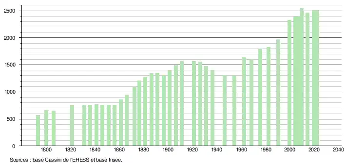 - ↑ Fiches Insee - Populations de référence de la commune pour les années 2006, 2007, 2008, 2009, 2010, 2011, 2012, 2013, 2014, 2015, 2016, 2017, 2018, 2019, 2020, 2021 et 2022.