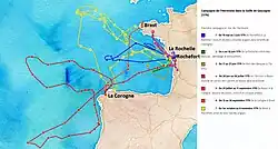 - ↑ Monsieur de Boisgelin, Journal de la frégate du Roy l'Hermione commandée par Mr le Ch. Duperou capitaine de vaisseau depuis Trinquemalai jusqu'à Rochefort.
