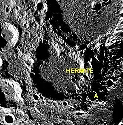 Par convention, les cratères satellites sont identifiés sur les cartes lunaires en plaçant la lettre sur le côté du point central du cratère qui est le plus proche de Hermite.