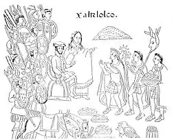 Suivant la côte en direction du nord-ouest, l'expédition rencontre bientôt des canoës transportant des ambassadeurs de l'empereur aztèque Moctezuma II[22]. Cortés leur montre ses chevaux et ses armes à feu pour les impressionner, mais tâche de les rassurer, en leur parlant de paix. Les émissaires, venus accompagnés de peintres et de dessinateurs, ont pour mission d'aller rendre compte de la présence des Espagnols à leur maître.