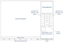 Sur l’écran d’aventure, le joueur dirige son armée afin de récupérer des trésors et de prendre le contrôle de cités, de châteaux et de sites de production qui génèrent des ressources. Grâce à ces ressources, il peut développer les infrastructures de son château ou recruter des créatures pour renforcer l’armée de son héros[6]. La phase stratégique se déroule au tour par tour, chaque tour correspondant à une journée. Au début de chaque jour, les joueurs engrangent une certaine quantité d’or et de ressource en fonction des cités et des mines qu’ils contrôlent et, au début de chaque semaine, de nouvelles créatures peuvent être recrutées[6]. Le joueur ne peut effectuer qu’un certain nombre d’action par jour. Les déplacements d’un héros dépendent ainsi du nombre de points de mouvement dont celui-ci dispose et le joueur ne peut construire qu’un nouveau bâtiment par tour dans chaque cité[7]. Chaque joueur débute généralement la partie avec un héros, accompagné de quelques créatures, ainsi qu’avec une cité[6]. Un brouillard de guerre recouvre au départ toute la carte mais celui-ci disparait au fur et à mesure que les héros du joueur l’explorent. Ce dernier peut ensuite voir tout ce qui se passe dans les zones ainsi révélées[6]. En plus d’explorer la carte, les héros peuvent récupérer des trésors et des artefacts, visiter des bâtiments neutres pour obtenir des bonus, et prendre le contrôle de mines et de sites de production qui génèrent les différentes ressources qui permettent au joueur de développer son château ou de recruter des créatures. Pour cela, ils doivent souvent combattre des groupes de monstres errants qui contrôlent l’accès à certaines zones de la carte ou à certaines ressources[6]. Une armée ne peut être constituée que de sept types de troupes, quel que soit le nombre de créature du même type que compte celle-ci[8]. En plus du héros qu’il contrôle au début de la partie, le joueur peut en recruter de nouveaux dans les tavernes de ses cités[9].
