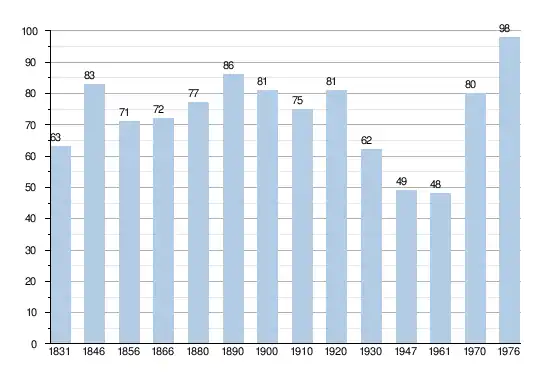 - Sources : INS, Rem. : 1831 jusqu'en 1970 = recensements, 1976 = nombre d'habitants au 31 décembre[3].