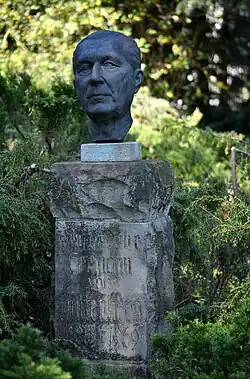 - Buste en bronze de son mari dans le jardin botanique de Rostock