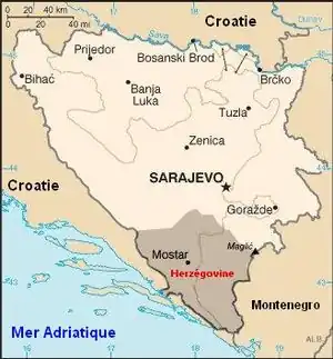 L'Herzégovine (en bosnien, croate, serbe latin : Hercegovina ; en serbe cyrillique : Херцеговина) est une région géographique historique des Alpes dinariques, correspondant à la partie méridionale de l'État actuel de Bosnie-Herzégovine. Son nom vient de l'allemand Herzog (« duc ») et signifie donc « duché », elle doit son nom au duc Stefan Vukčić Kosača (1435 à 1466). C'est au XIXe siècle qu'il fut décidé d'associer le nom de l'Herzégovine à celui de Bosnie, auparavant seul utilisé pour désigner le pays entier.