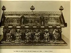 Le sarcophage de Chrodoara[11], l'œuvre d'art mérovingienne la plus spectaculaire conservée en Belgique, a été retrouvé à Amay sous la collégiale.