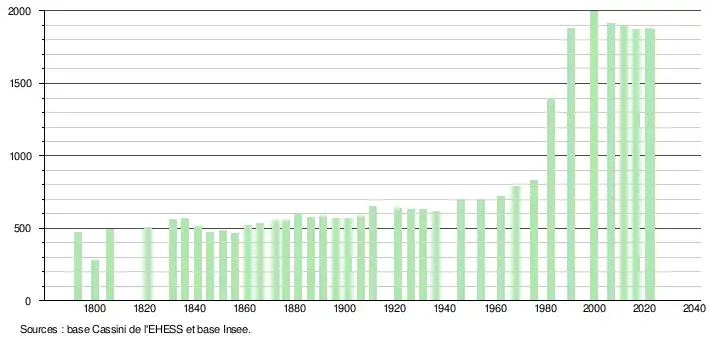 - ↑ Fiches Insee - Populations de référence de la commune pour les années 2006, 2007, 2008, 2009, 2010, 2011, 2012, 2013, 2014, 2015, 2016, 2017, 2018, 2019, 2020, 2021 et 2022.