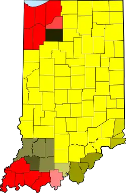 - divise une petite partie du sud-ouest de l'Indiana du reste de l'État ;
