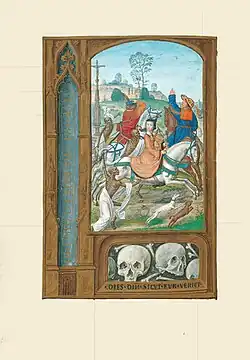 L'Office des Défunts contient une version d'une composition peu fréquente incluse dans les Heures de Marie de Bourgogne conservées à Berlin, qui montre Marie à cheval, dans la « légende des trois vifs et des trois morts ». Cette miniature pourrait indiquer que le livre fut commandé pour une femme, ou pour quelqu'un qui aurait pu avoir une relation de proximité avec la duchesse de Bourgogne. La somptuosité du manuscrit nous indique qu'il s’agit là d’une commande royale. La présence de saint Célédoine, saint Ildefonse et saint Isidore laisse penser que l'œuvre a été réalisée pour un membre de la famille royale espagnole. Les références à saint Jean-Baptiste, saint Jean l’Évangéliste, saint Ildefonse et saint Isidore évoquent Jeanne Ire de Castille, Jeanne la Folle.