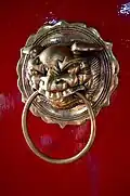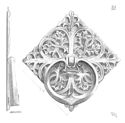 - ↑ « Marteau », dans le Dictionnaire de l'Académie française, sur Centre national de ressources textuelles et lexicales, sens 2 : « Marteau de porte : anneau ou battant de métal articulé, fixé à l'extérieur d'une porte d'entrée, et avec lequel on frappe pour se faire ouvrir ».
