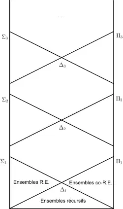 Ceci définit la hiérarchie, la classe des ensembles Σ0 étant définie.