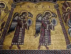 Ils sont parfois aussi identifiés aux roues vivantes du char de Dieu[16], suivant la vision de Daniel : « son trône était comme des flammes de feu, et les roues comme un feu ardent »[29]. Ces mêmes roues apparaissent associées aux chérubins de la vision d'Ézéchiel[23], et la tradition juive leur donne alors le nom de Ophanim.