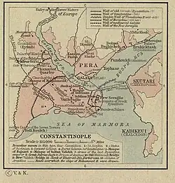 - ↑ C'est actuellement une presqu'île avec un phare construit vers 1830 et un parc destiné à la promenade et au sport (Fenerbahçe signifie en turc « le jardin du phare »). Pour l'identification du lieu, voir Jules Pargoire, « Hiéria », Izvestija Russkogo Arheologičeskogo Instituta v Konstantinopole [IRAIK], t. IV, 1899, p. 9-78.