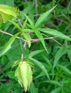 Ses feuilles sont finement découpées, à lobe étroit, dentée et pointue les faisant ressembler à celles du cannabis.