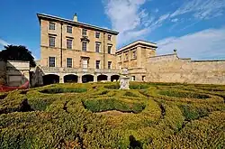 Le bâtiment est construit en 1745-1748 en pierre de taille calcaire avec des toits en ardoise graduée. Le bâtiment principal a une façade de sept baies avec des pavillons flanquants.