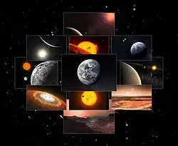 Voir aussi le poster [PNG] (consulté le 5 juin 2015). - ↑ (en) Nuno C. Santos et al., « Fourteen times the Earth: ESO HARPS instrument discovers smallest ever extra-solar planet » [« Quatorze fois la Terre : l'instrument HARPS de l'ESO découvre la plus petite planète extrasolaire à ce jour »], sur Observatoire européen austral, communiqué de presse scientifique no eso0427 du (consulté le ).