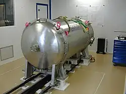 - l'augmentation de la stabilité de l'instrument : HARPS est installé à l'intérieur d'une cuve à vide contrôlée thermiquement (cf. section « Cuve à vide ») ;