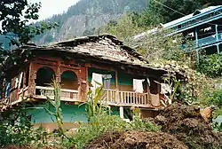 Matériau abondant dans le Moyen Himalaya, le bois est utilisé pour la confection de fenêtres, portes et balcons dans lesquels les artisans sculptent des motifs floraux, animaliers ou anthropomorphes. Les essences les plus couramment utilisées sont le cèdre, le déodar, le noyer et le shesham.
