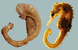 En dehors des mammifères, les autres espèces ne possèdent pas strictement d’hippocampe mais possèdent parfois une structure considérée comme homologue. En effet, chez les autres vertébrés, le cortex est beaucoup moins développé et par extension l’hippocampe, qui occupe généralement la face médiane du cortex des mammifères, n’est pas présent. Néanmoins, la structure dont dérive le cortex, appelée pallium, est présente chez tous les vertébrés, jusqu'aux plus primitifs, comme les lamproies ou les myxines[34]. Le pallium est divisé en trois zones : médiale, latérale et dorsale. Le pallium médian forme une structure correspondant à un hippocampe primitif. Elle ne ressemble pas visuellement à l’hippocampe, elle n’a pas la forme caractéristique en S et n’est pas entourée du gyrus dentelé ; mais l’homologie de cette structure est fortement suggérée par ses ressemblances biochimiques et fonctionnelles avec l’hippocampe. Plusieurs études ont depuis montré l’implication de cette structure dans la cognition spatiale chez les oiseaux, les reptiles et les poissons[35].