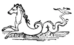 L'hippocampe mythologique est devenu une figure héraldique imaginaire, particulièrement durant la Renaissance, en relation avec la mer. Les hybrides de chevaux et de poissons forment une figure assez fréquente[10].