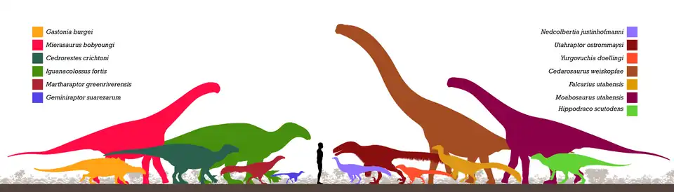 - ↑ James I. Kirkland, Marina Suarez, Celina Suarez et ReBecca Hunt-Foster, « The Lower Cretaceous in east-central Utah—The Cedar Mountain Formation and its bounding strata », Geology of the Intermountain West, vol. 3, , p. 101–228 (ISSN 2380-7601, DOI 10.31711/giw.v3i0.9, lire en ligne, consulté le ).