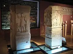 - l'obélisque de Théodose, érigé d'abord par le pharaon Thoutmôsis III au sud du VIIe pylône du grand temple de Karnak en Égypte, transporté à Alexandrie sous Constance II (empereur de 337 à 361), puis enfin à Constantinople sous le règne de Théodose Ier (empereur de 379 à 395) où il fut réérigé en 390 dans l'hippodrome[5].