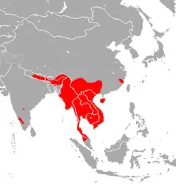 Cette espèce est présente au Népal, en Inde, au Bangladesh, en Chine, en Birmanie, au Laos, en Thaïlande, au Cambodge, au Viêt Nam et en Malaisie[2].