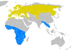 L'hirondelle de fenêtre se rencontre dans toute l'Eurasie et la moitié de l'Asie (sauf dans l'extrême nord de la Sibérie) et en Afrique du Nord-Ouest. Les sous-espèces de l'Ouest nichent à travers l'Eurasie tempérée, à l'est jusque vers le centre de la Mongolie et le fleuve Ienisseï, ainsi qu'au Maroc, en Tunisie et dans le Nord de l'Algérie[11]. Elles migrent pour passer l'hiver en Afrique subsaharienne. La sous-espèce D. u. lagopodum niche vers l'est de l'Ienisseï jusqu'à la Kolyma et au sud jusque dans le Nord de la Mongolie et celui de la Chine ; elle hiverne dans le sud de la Chine et en Asie du Sud-Est[4].