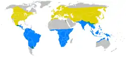 - Bleu : zones d'hivernage