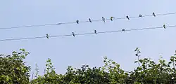 - ↑ (en) B. Bijlsma et van den Brink B., « A Barn Swallow Hirundo rustica roost under attack: timing and risks in the presence of African Hobbies Falco cuvieri », Ardea, vol. 93, , p. 37-48 (lire en ligne).
