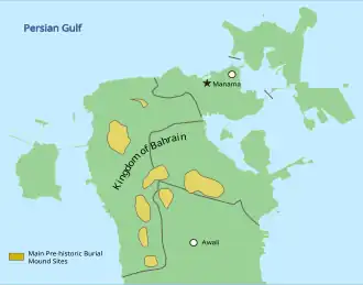 La présence d'objets en silex et de poteries datant d'environ 5 000 avant notre ère indique que Bahreïn est habité depuis cette époque[2].