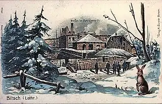 Le Reich réagit à la construction de la Ligne Maginot par la construction d'une ligne de défense frontalière, appelée le Westwall (le mur de l'ouest) qui est surnommé plus tard Ligne Siegfried par les Alliés. Le , deux jours avant la déclaration officielle de la guerre de la France à l'Allemagne, les cloches de l'église Sainte-Catherine donnent le signal de l'évacuation de la ville. Les réfugiés bitchois arrivent ainsi en Charente.