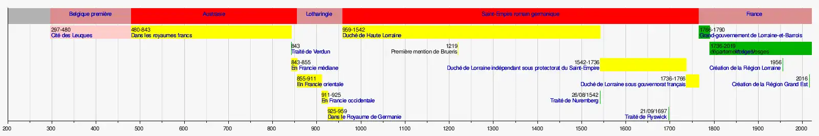 Frise chronologique des entités territoriales où se trouvait Bruyères