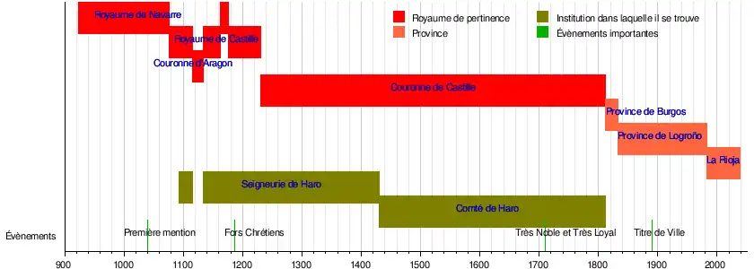 - (es) Cet article est partiellement ou en totalité issu de l’article de Wikipédia en espagnol intitulé « Historia de Haro » (voir la liste des auteurs).