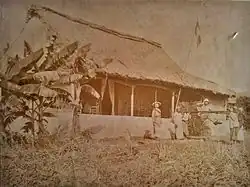Aperçu de la fouille du quartier des notables d'Acoua avec vestiges de constructions des XIVe – XVe siècles.- Restitution d'une habitation aisée à Acoua, au XVe siècle.