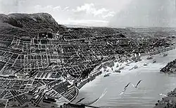 Au milieu du XVIIIe siècle, la rue Notre-Dame, en haut du coteau Saint-Louis, est construite de résidences bourgeoises et a accueilli les principales institutions de la ville. La rue Saint-Paul conserve les activités commerciales liées au port. La garnison est peu à peu expulsée de la place du marché alors requise pour le commerce vers l'espace au nord de l'église Notre-Dame qui devient la place d'Armes.