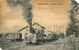 Le chemin de fer arriva à Nogent-le-Rotrou en 1854 avec l'ouverture, le 16 février, du tronçon Chartres-Nogent-le-Rotrou ; le 1er juin 1854, Nogent-le-Rotrou fut reliée au Mans.